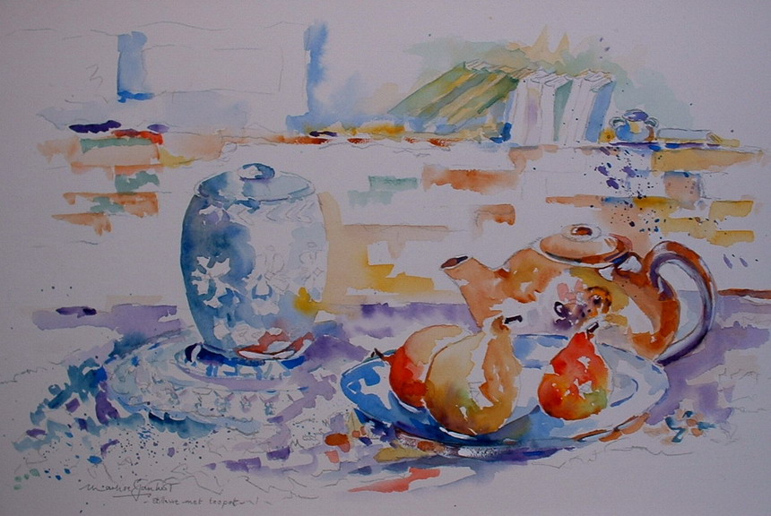 Stillewe met teepot/Sill life with teapot. 50×36. Framed